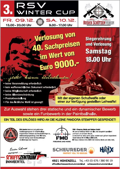 Der Rieder Schützenverein veranstaltet am 09. und 10.12.2022 den 3. RSV Wintercup. Diesmal ist der Cup für alle zugänglich.