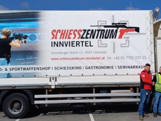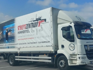 Nach zwei Werbungen, vom Schiesszentrum Innviertel, auf Sattelaufleger, jetzt noch der kleine Bruder dazu. Die Firma HK-Transport aus Grieskirchen entschied sich, die Werbung der Firmen K&P Waffen und die vom Schiesszentrum Innviertel, auf Oberösterreichs Straßen zu präsentieren.
