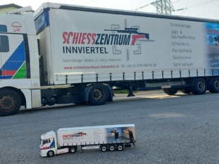 Ein uns bekannter Modellbauer, fertigte zum bereits übergebenen SZI Auflieger eine MAN Zugmaschine im Maßstab 1:14 der Firma Eggner an. Wir bedanken uns recht herzlich, für das schöne Modell. Der voll funktionsfähige RC LKW ist auf der Modellbaumesse Ried i.I. (14. und 15. Oktober 2023) auf dem Stand von PAF bzw. auf dem Schaukasten im Schiesszentrum Innviertel zu sehen.